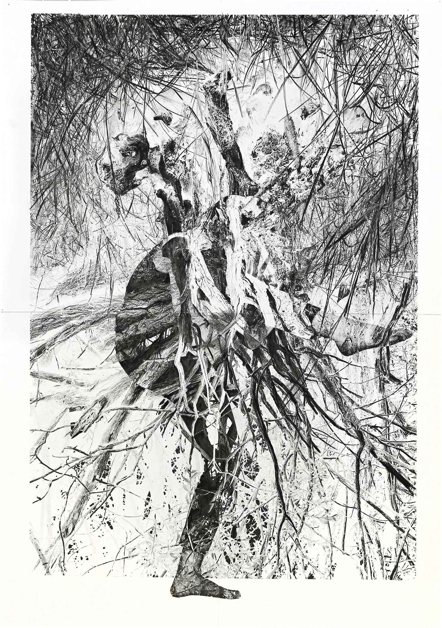 Earthling rooted (2022) 118 x 84 cm, charcoal, pencil & photo print on paper